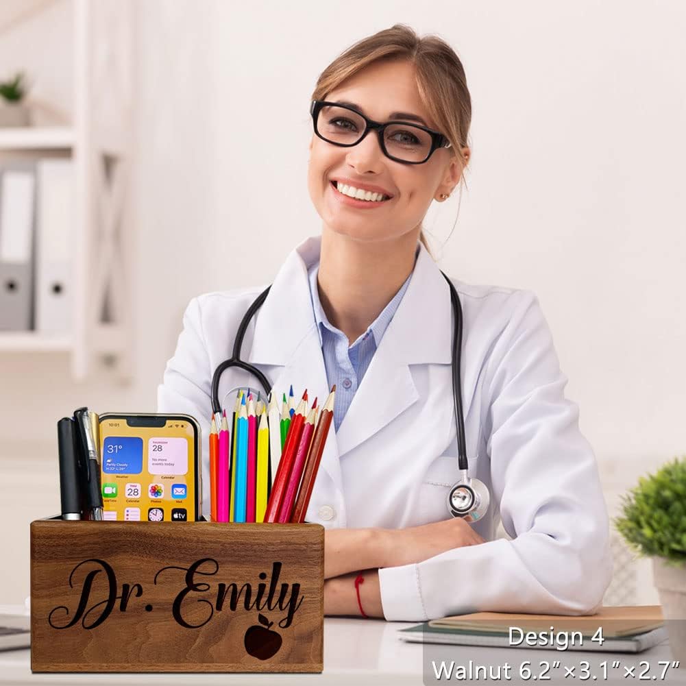 Gifts for Doctors, Personalized Name Pen Holder for Nurses, Hygienists, Assistants, Physician, Dentists, Unique Graduation, Birthday or Christmas Gifts Idea, Custom Desk Organizer