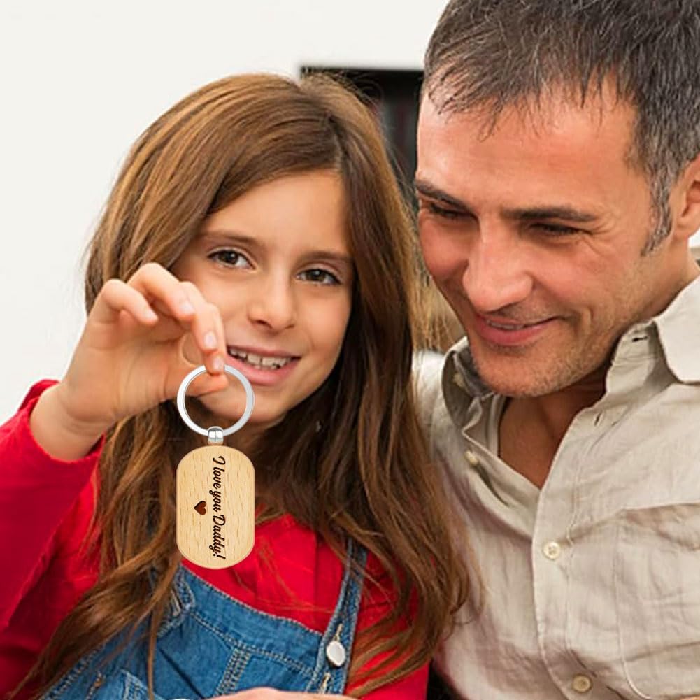 Personalized Any Text Keychain for Men Husband Boyfriend Dad Dog, Wooden Key Chain with Customized Text, 24 Icons, 12 Fonts, 3 Keychain Shapes are Available