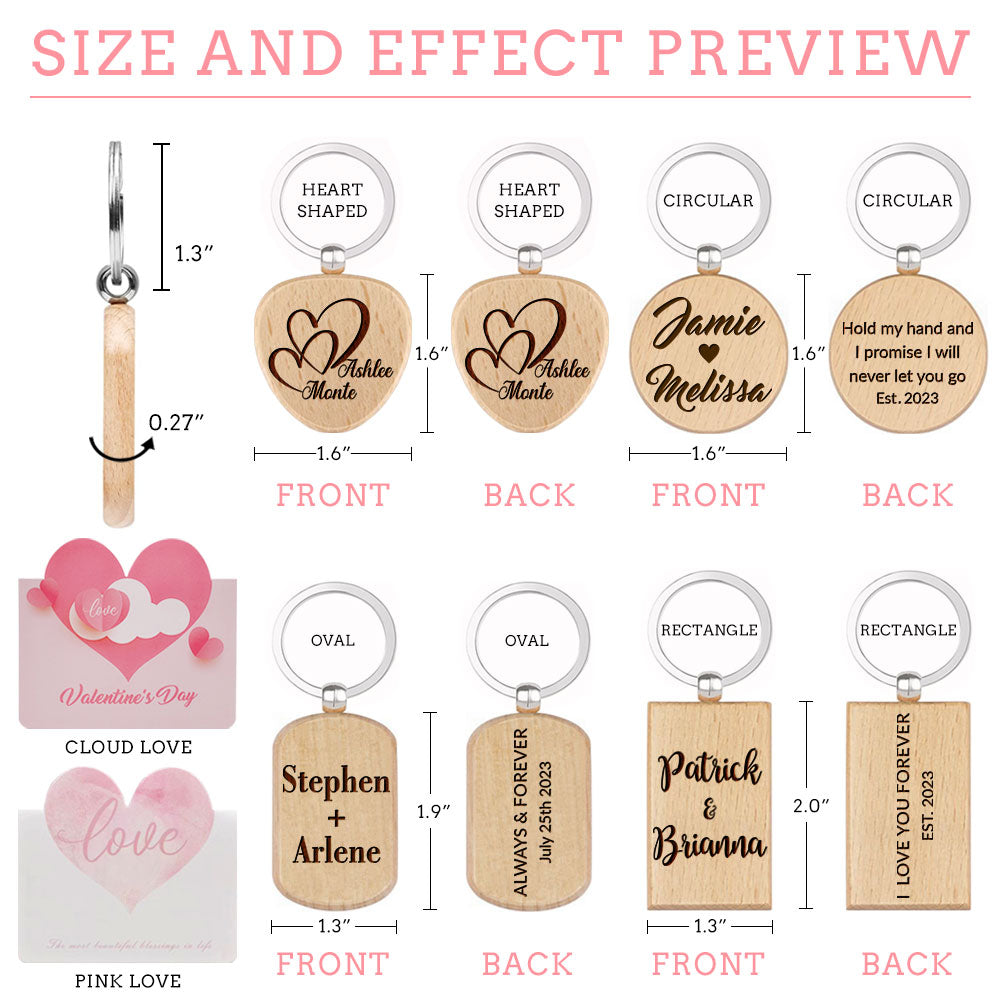 Personalized Name Wooden Keychain - Custom Engraved Key Chain, Handmade Gift for Couples, Newlyweds, Anniversary, Christmas, Valentine's Day Gift Idea